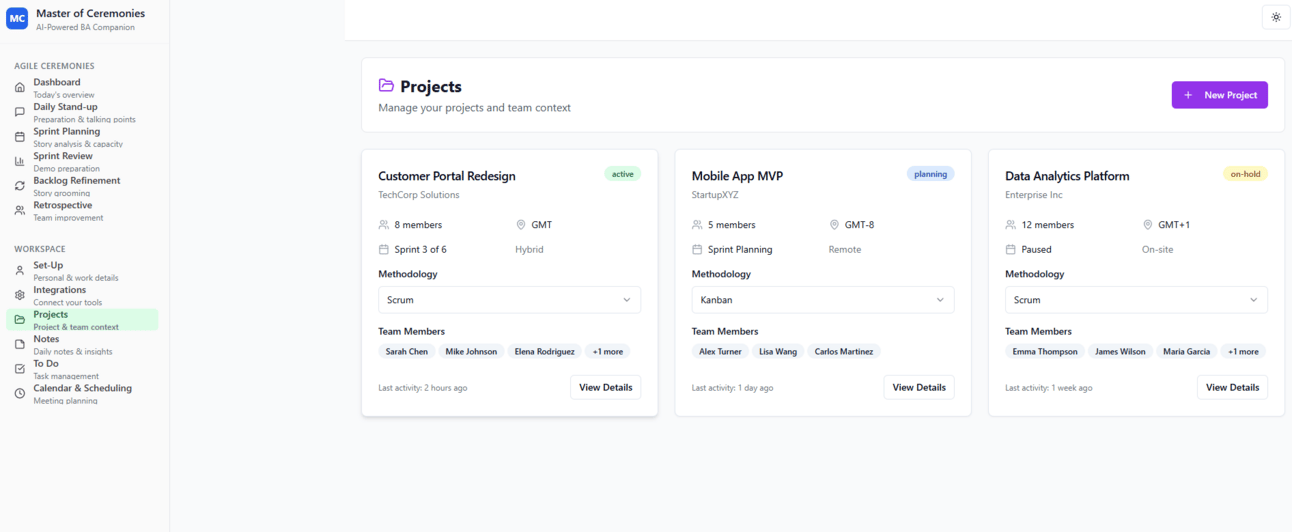 Contextual Intelligence - The system learns your work preferences, team dynamics, and project context to provide increasingly relevant ceremony preparation.
